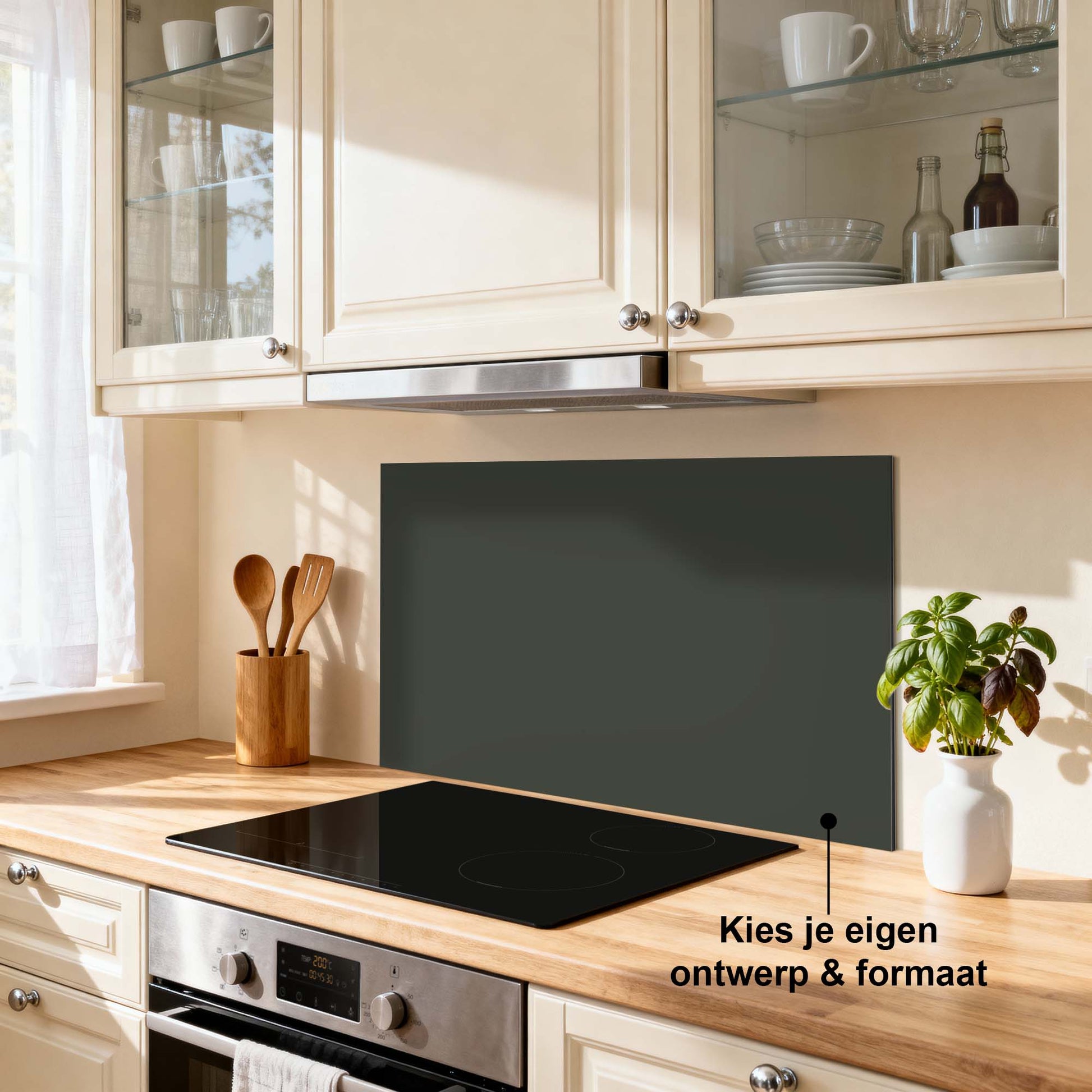 Onze spatwanden zijn gemaakt van Aluminium Dibond. Dit materiaal is licht, stevig, krasvast en goed bestand tegen vocht, waardoor het perfect is voor gebruik in de keuken.