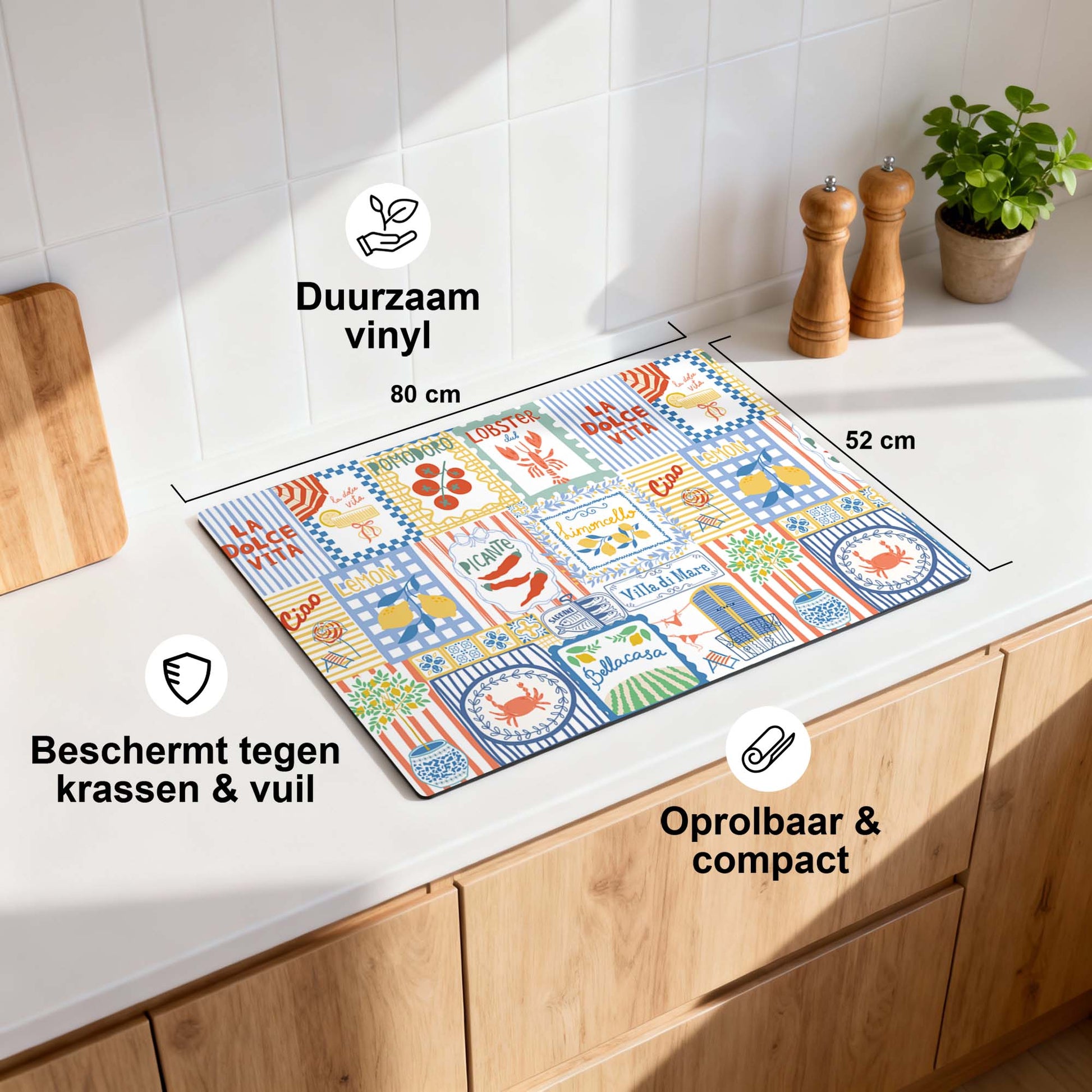 Het vinyl bestaat uit 100% polyester en is voorzien van een beschermende topcoating. Hierdoor is het waterafstotend, eenvoudig schoon te maken en bestand tegen lichte beschadigingen. Ideaal voor wie zijn inductiekookplaat netjes wil houden zonder gedoe.