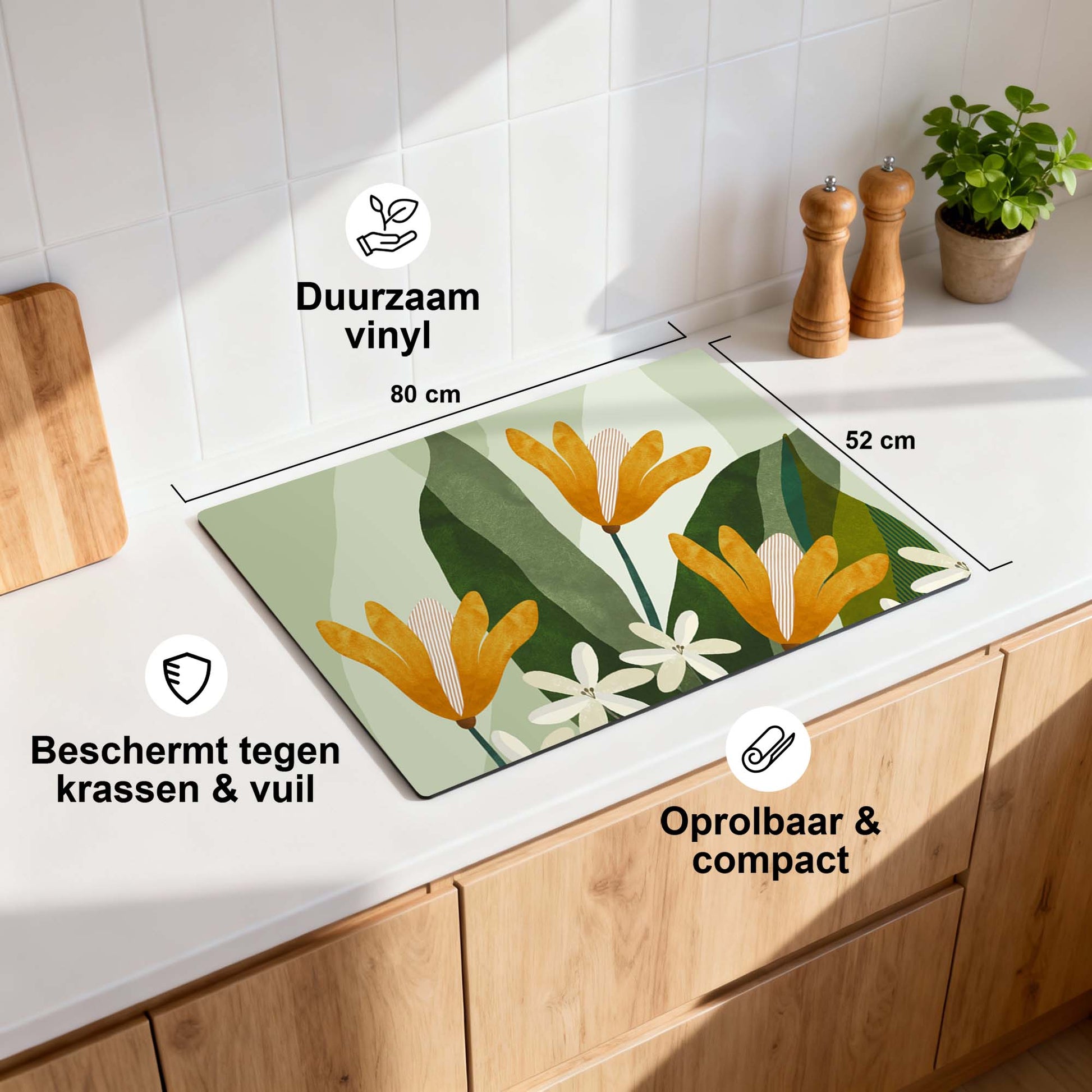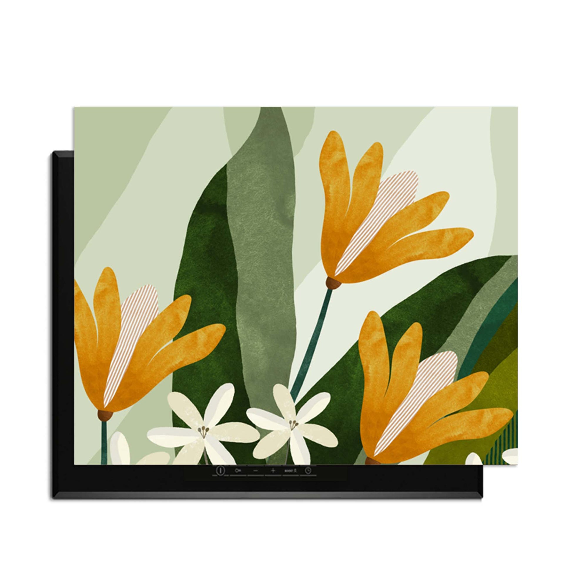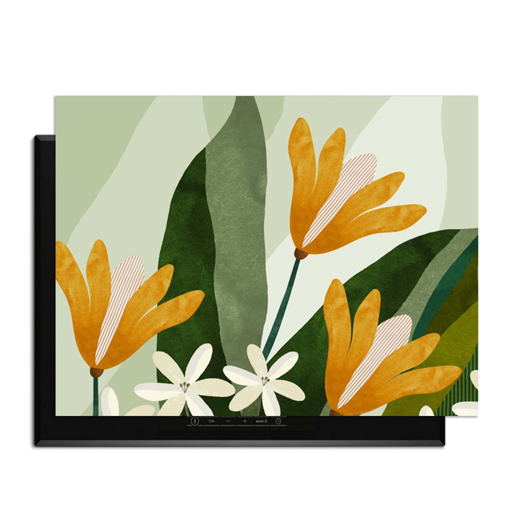 Golden Petals brengt warmte en elegantie in je keuken. Diepgroene bladeren en goudgele bloemen geven je inductieplaat een stijlvolle, natuurlijke uitstraling.
