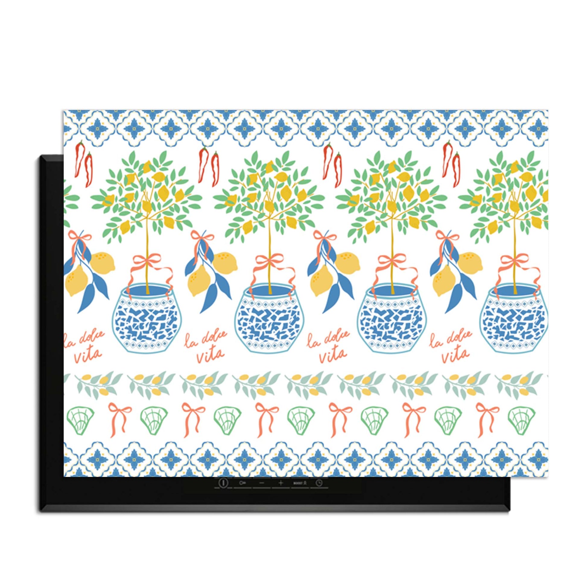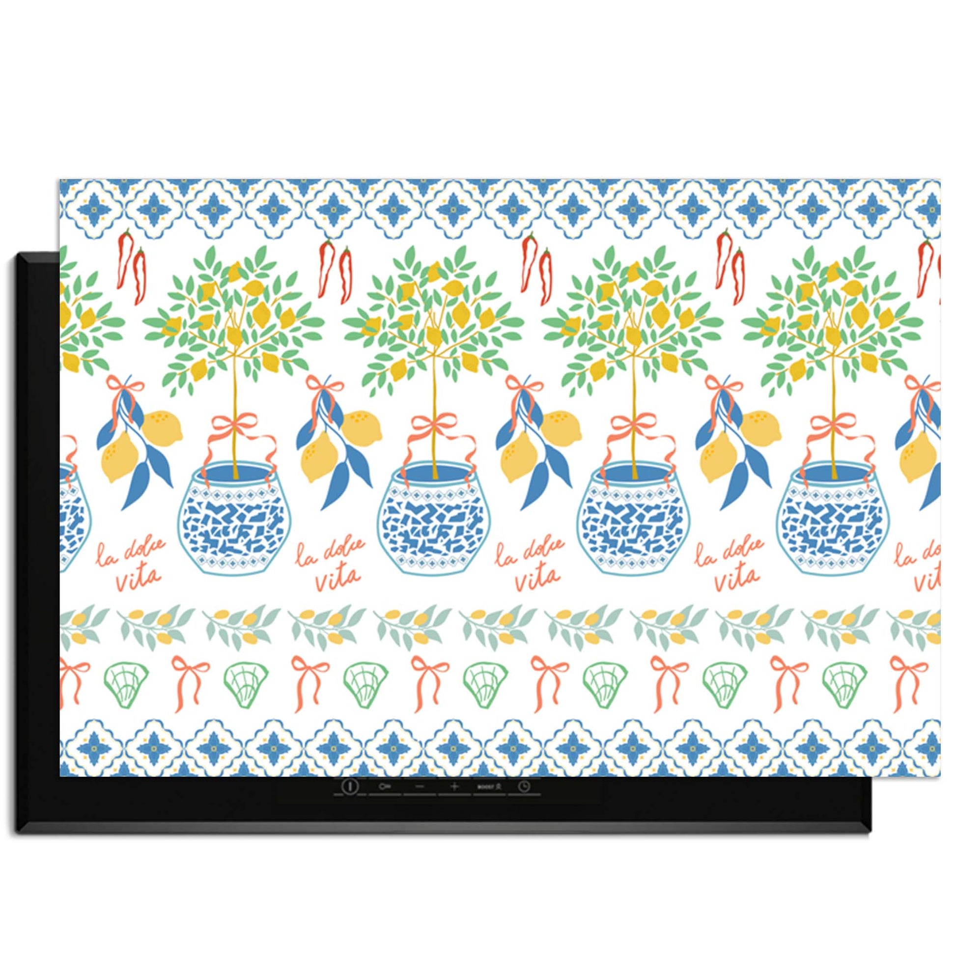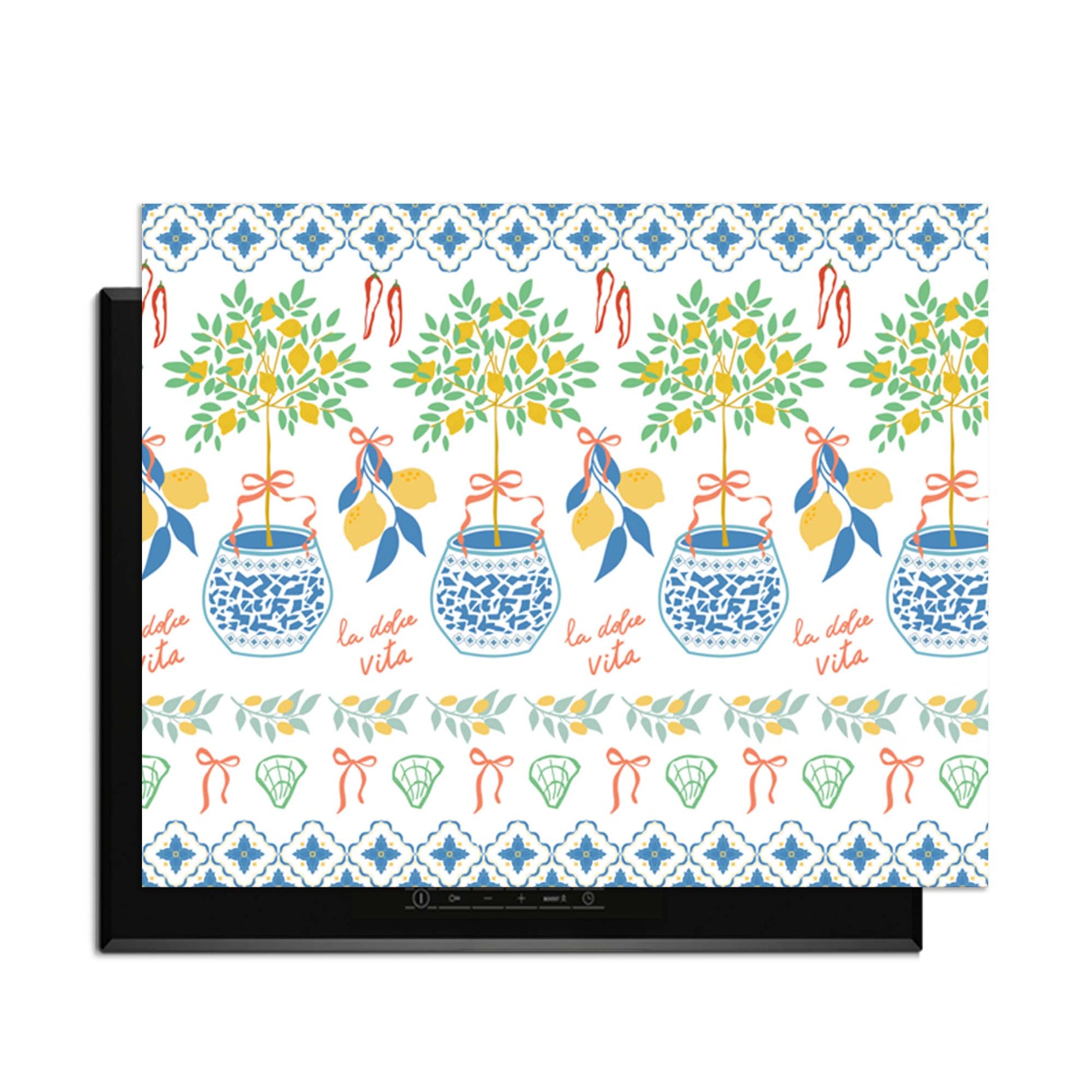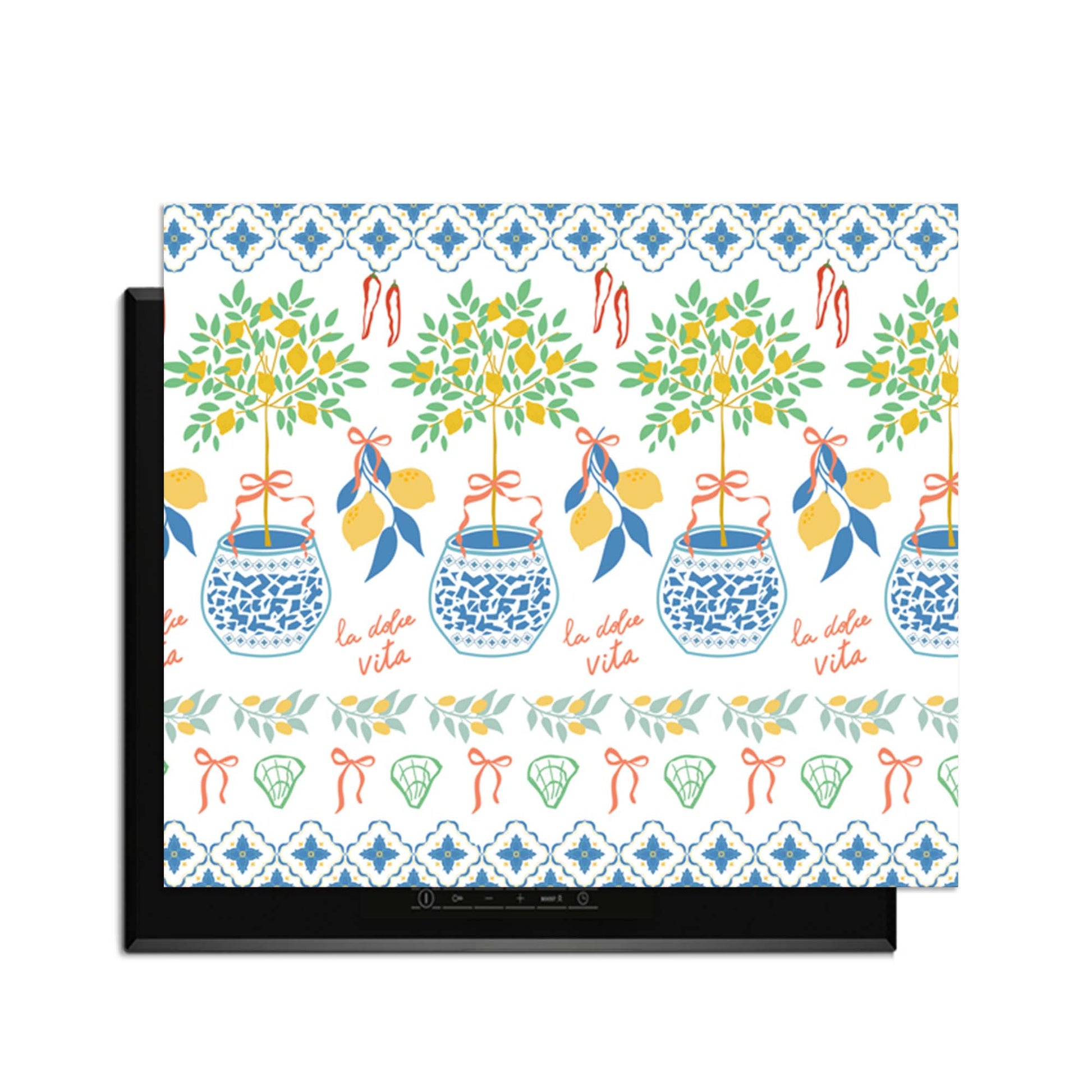 Lemon Rows brengt frisse citrustonen en mediterrane patronen naar je keuken. Een vrolijk Italiaans ontwerp dat je inductieplaat beschermt met stijl en kleur.