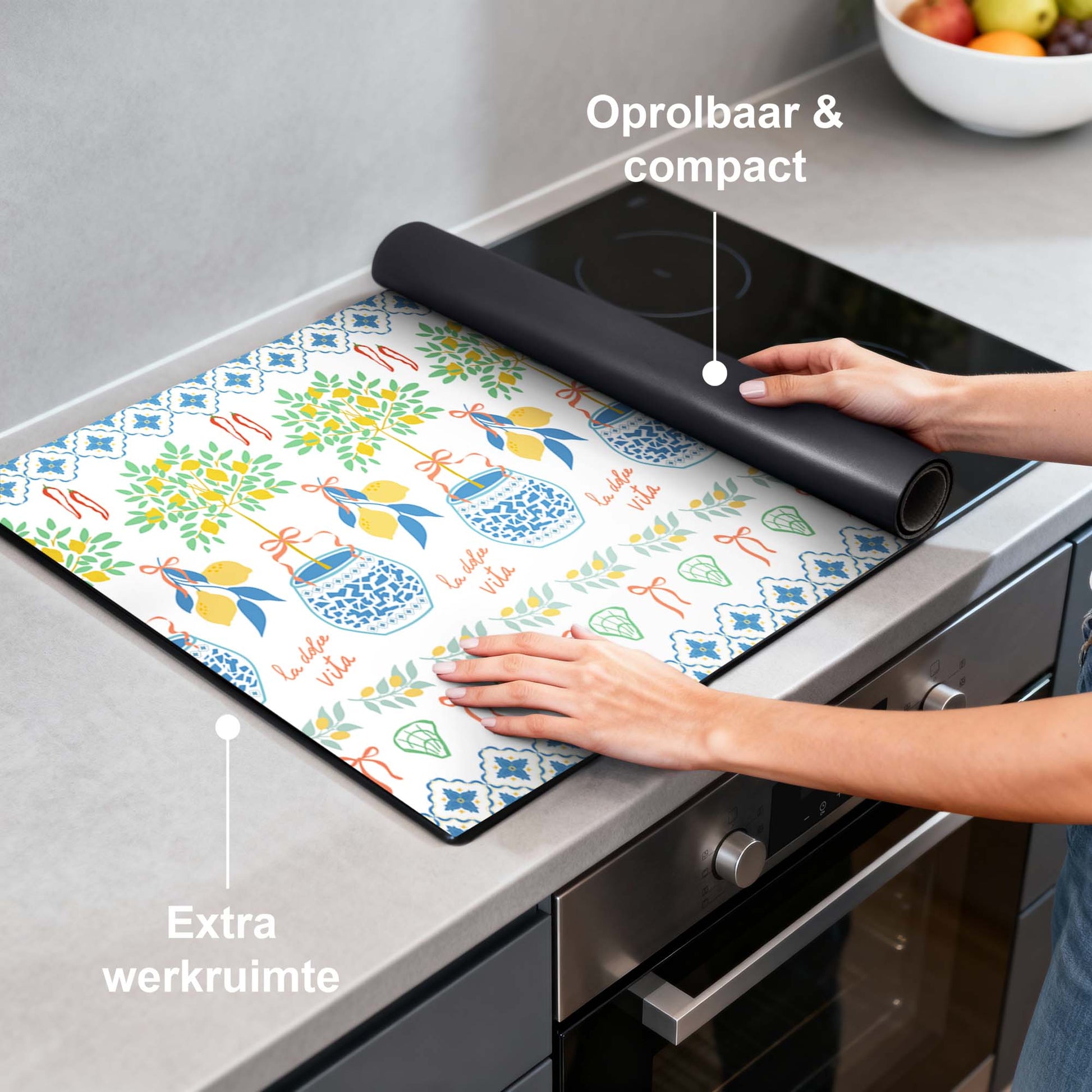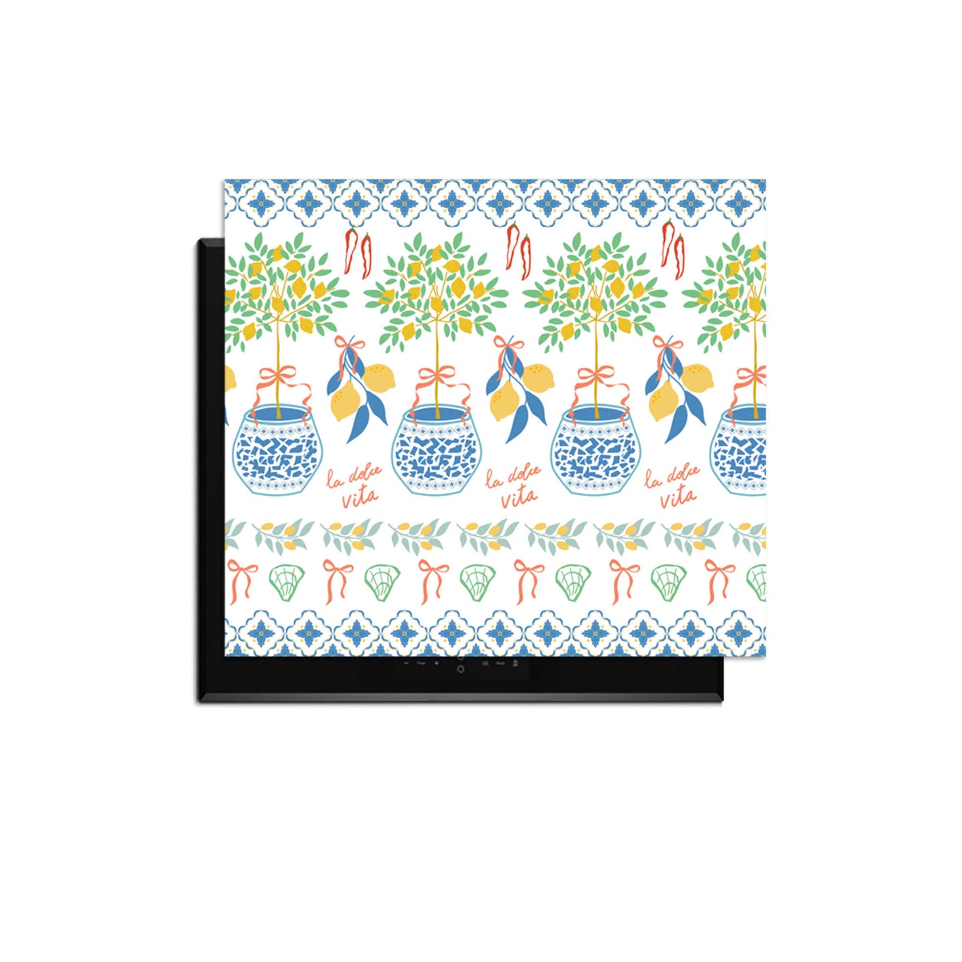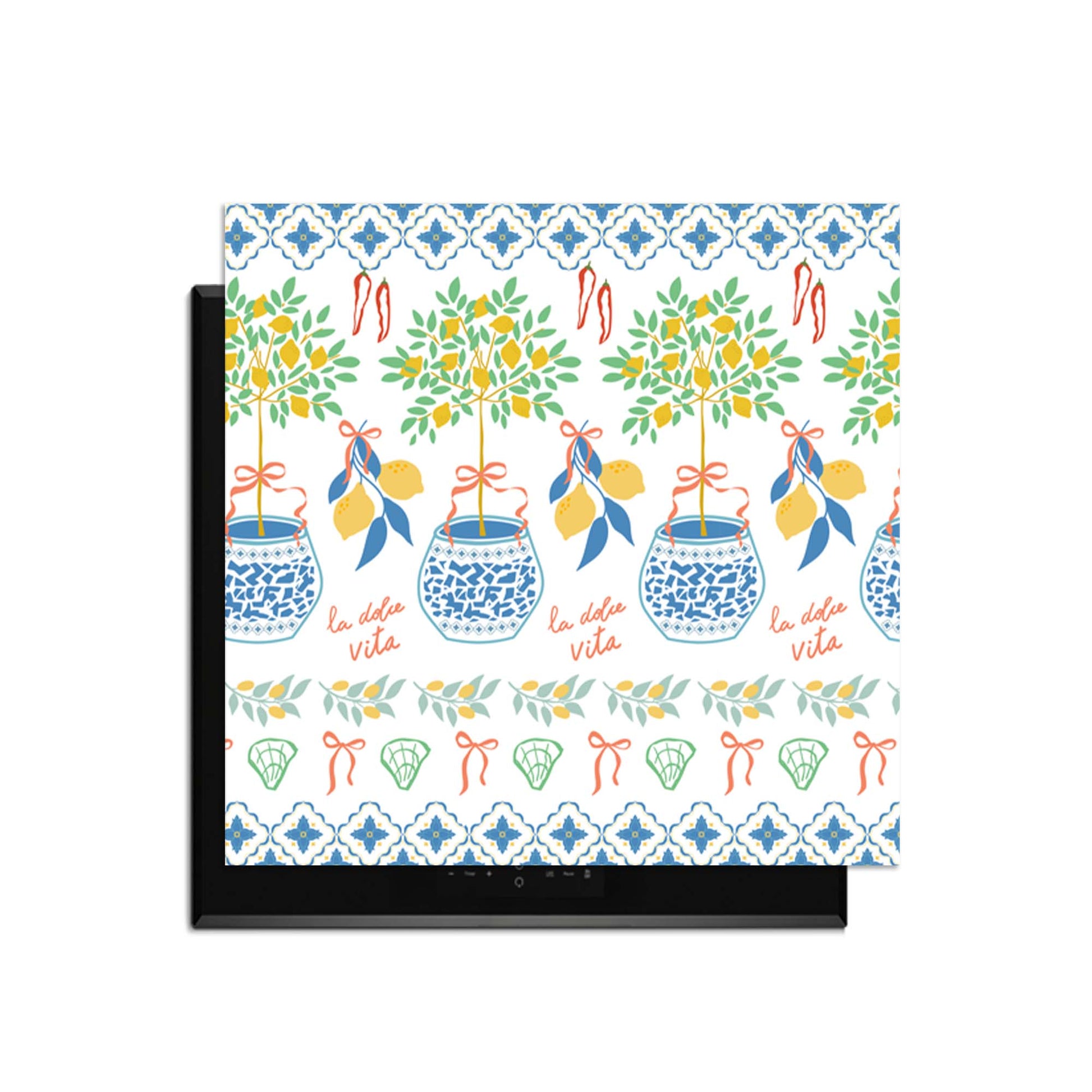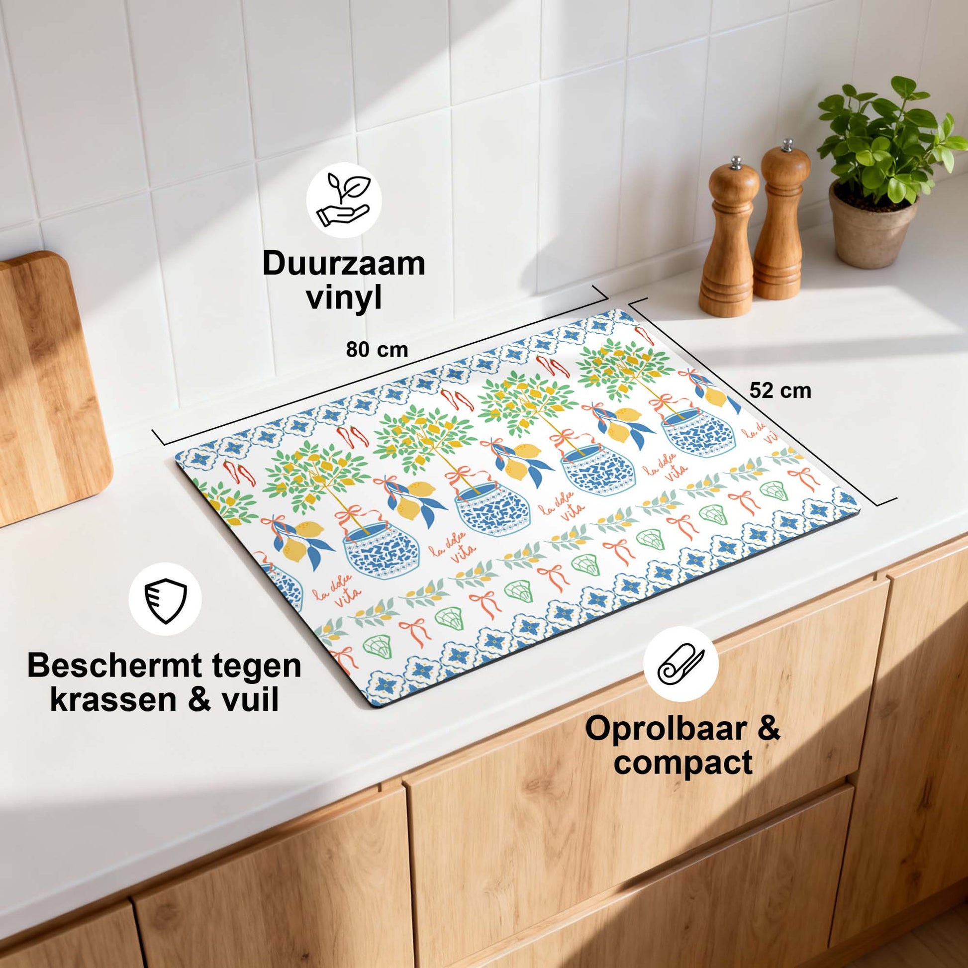 Lemon Rows brengt frisse citrustonen en mediterrane patronen naar je keuken. Een vrolijk Italiaans ontwerp dat je inductieplaat beschermt met stijl en kleur.