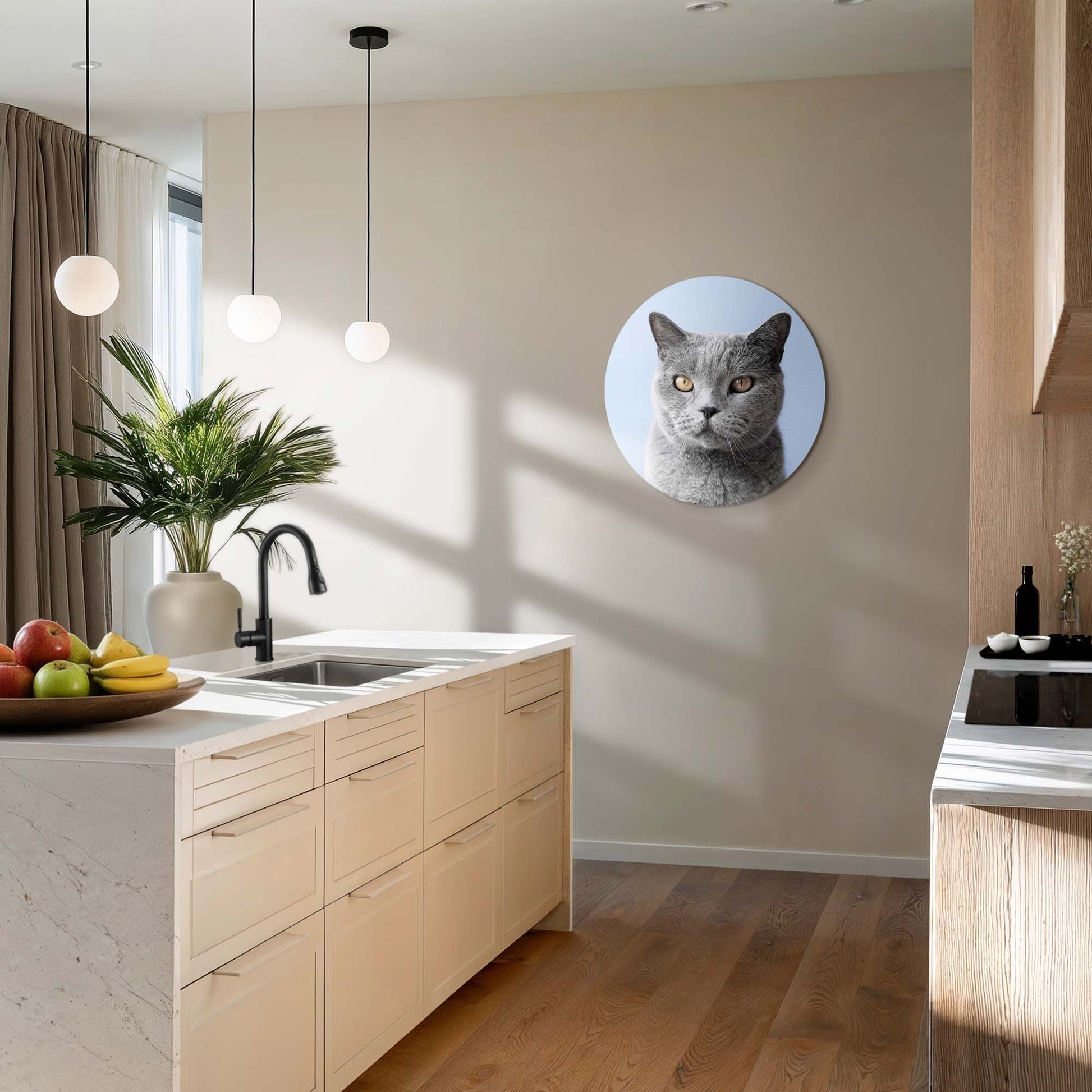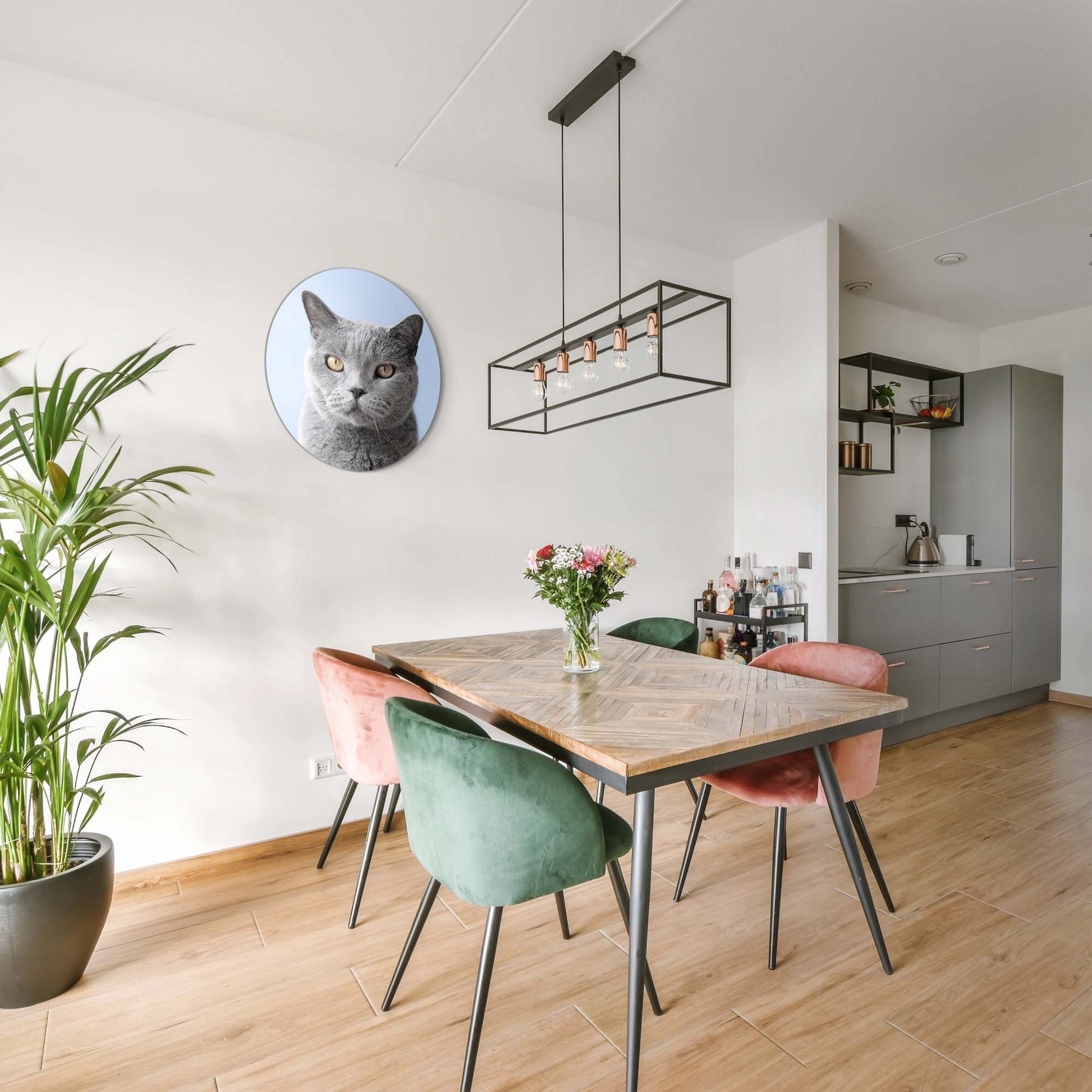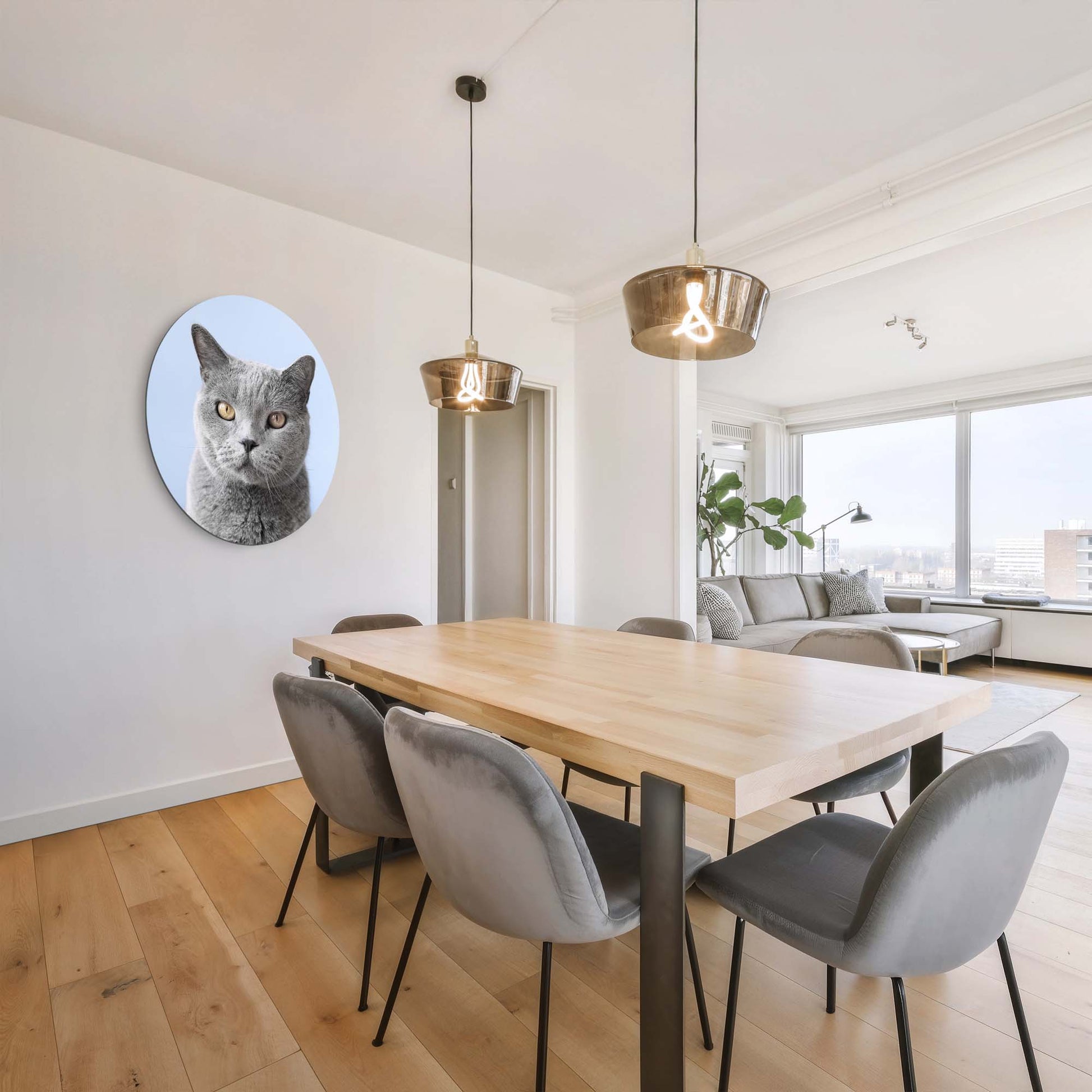 Breng rust en elegantie in je interieur met Misty Mood – een stijlvol design van een grijze kat op een zachte blauwe achtergrond, gedrukt op hoogwaardig aluminium dibond. Minimalistisch en tijdloos.