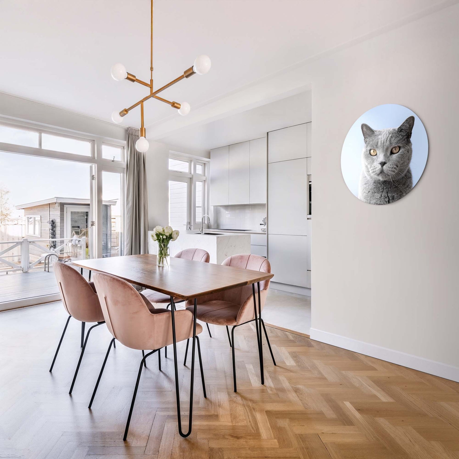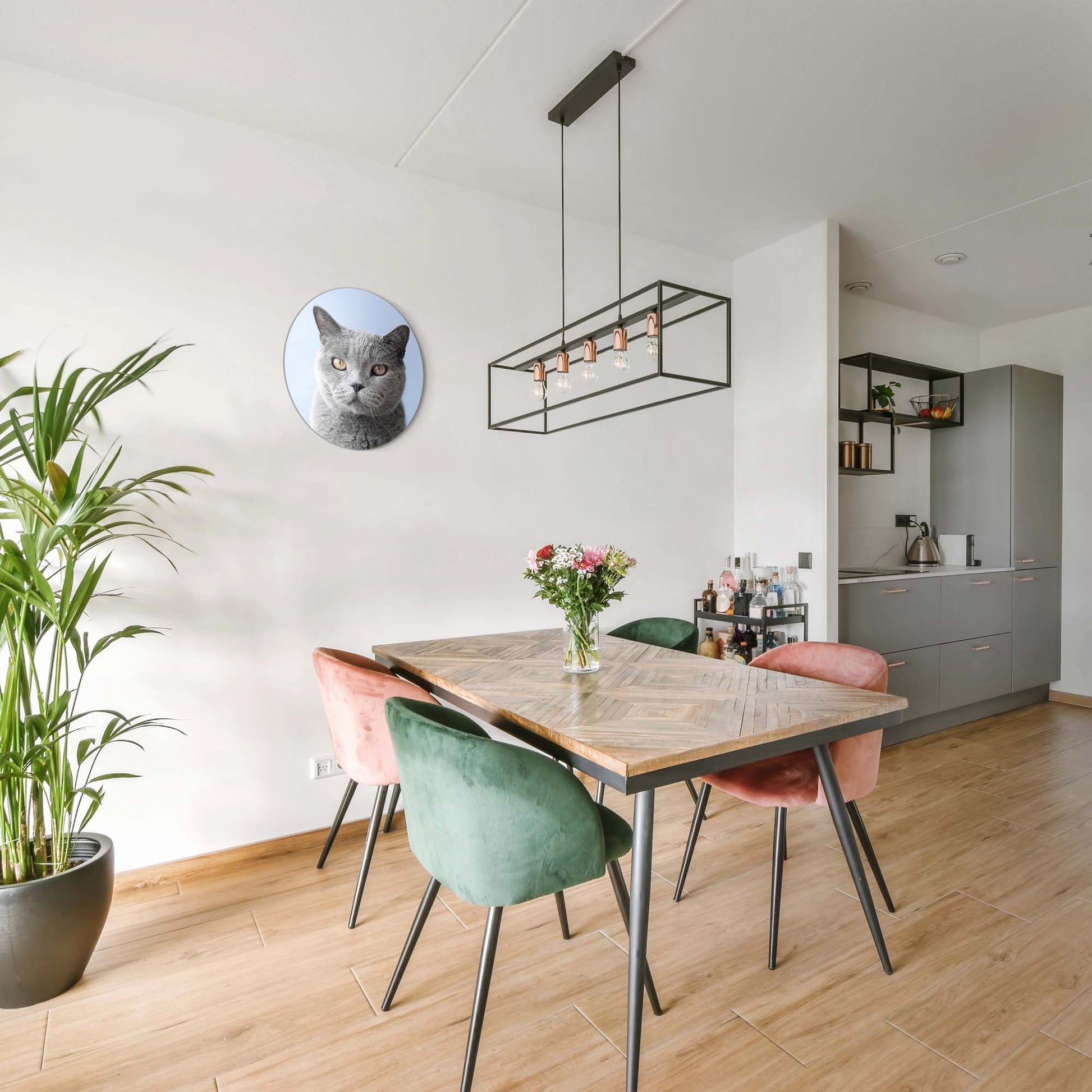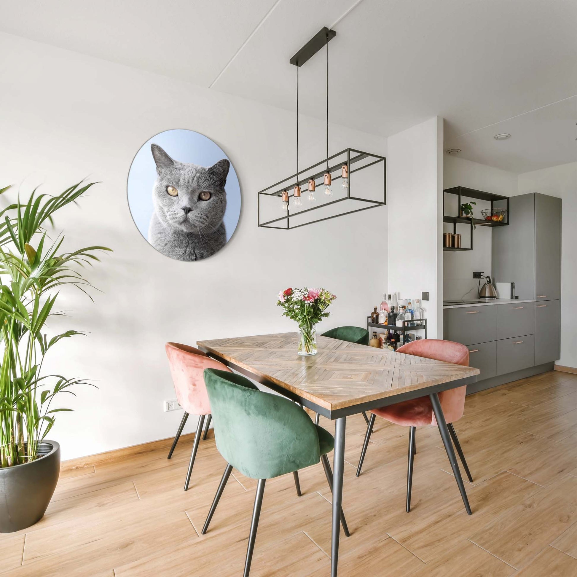 Breng rust en elegantie in je interieur met Misty Mood – een stijlvol design van een grijze kat op een zachte blauwe achtergrond, gedrukt op hoogwaardig aluminium dibond. Minimalistisch en tijdloos.