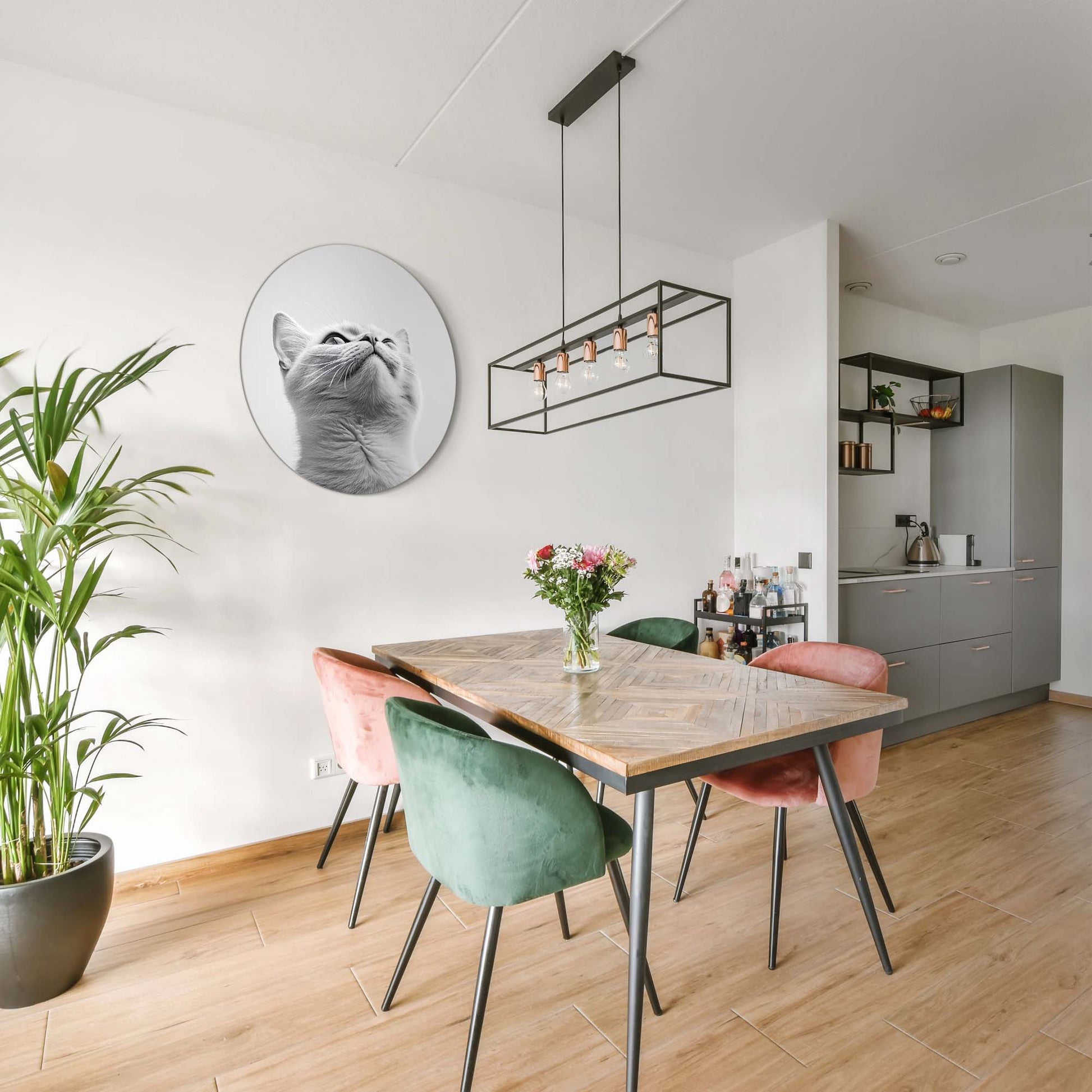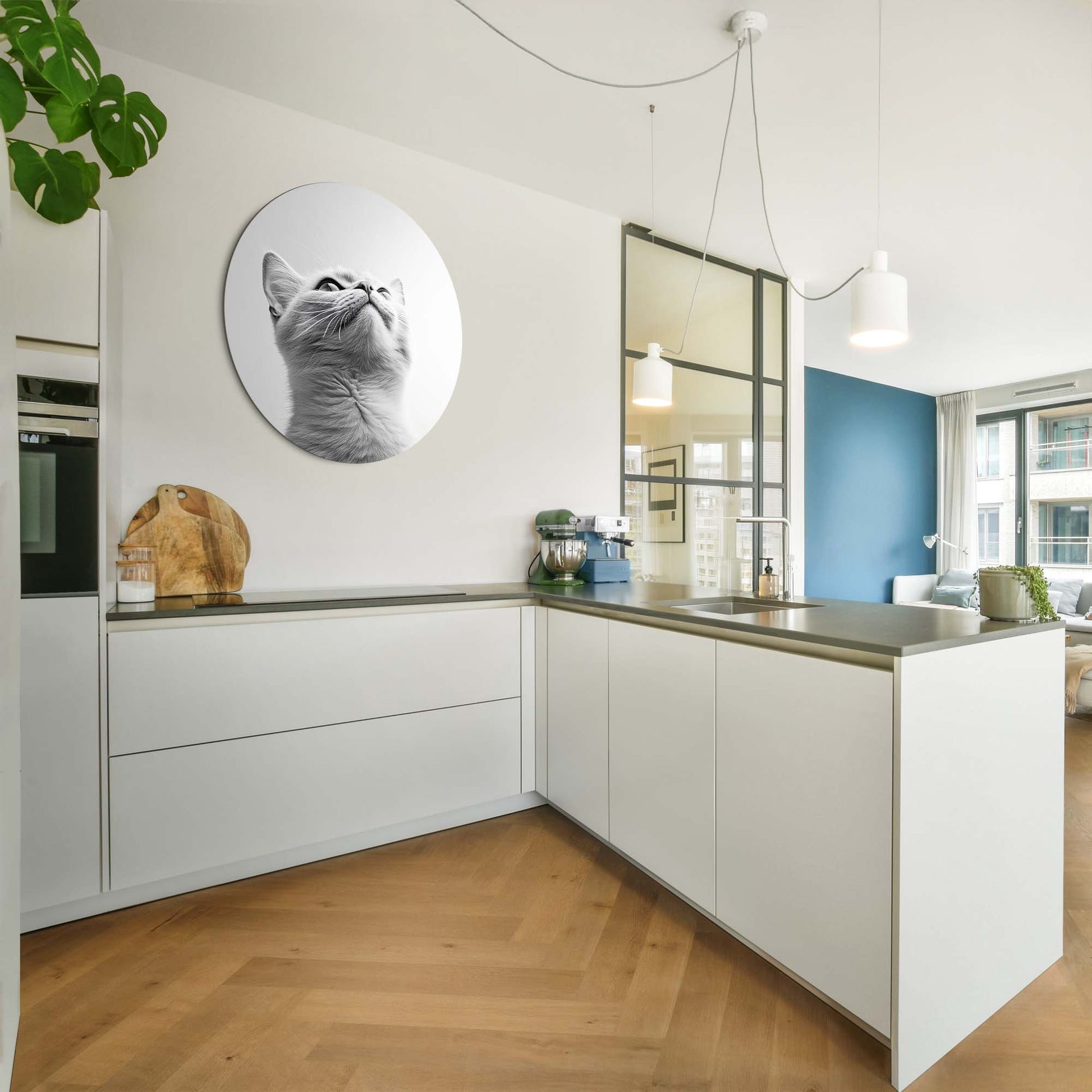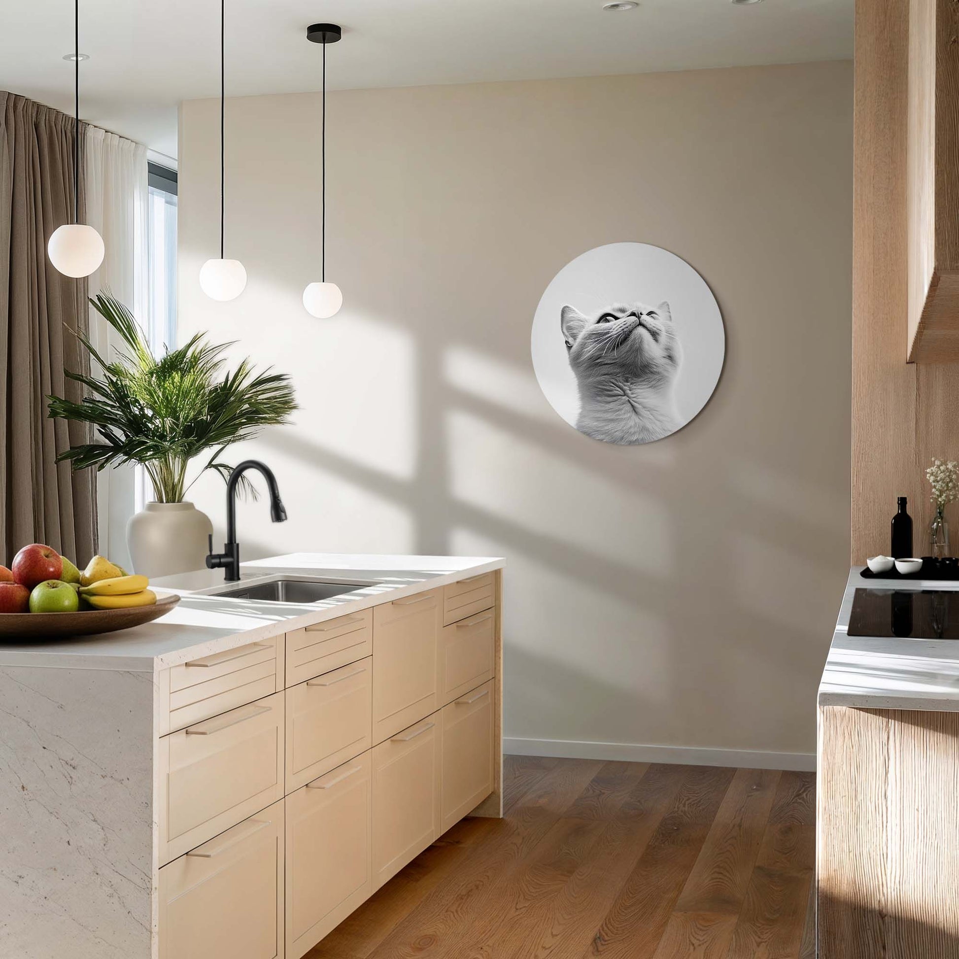 Breng een vleugje koninklijke flair in huis met Regal Whiskers – een speels en elegant design van een grijze kat met roze kroon, gedrukt op hoogwaardig aluminium dibond. Een stijlvolle eyecatcher voor elk interieur.