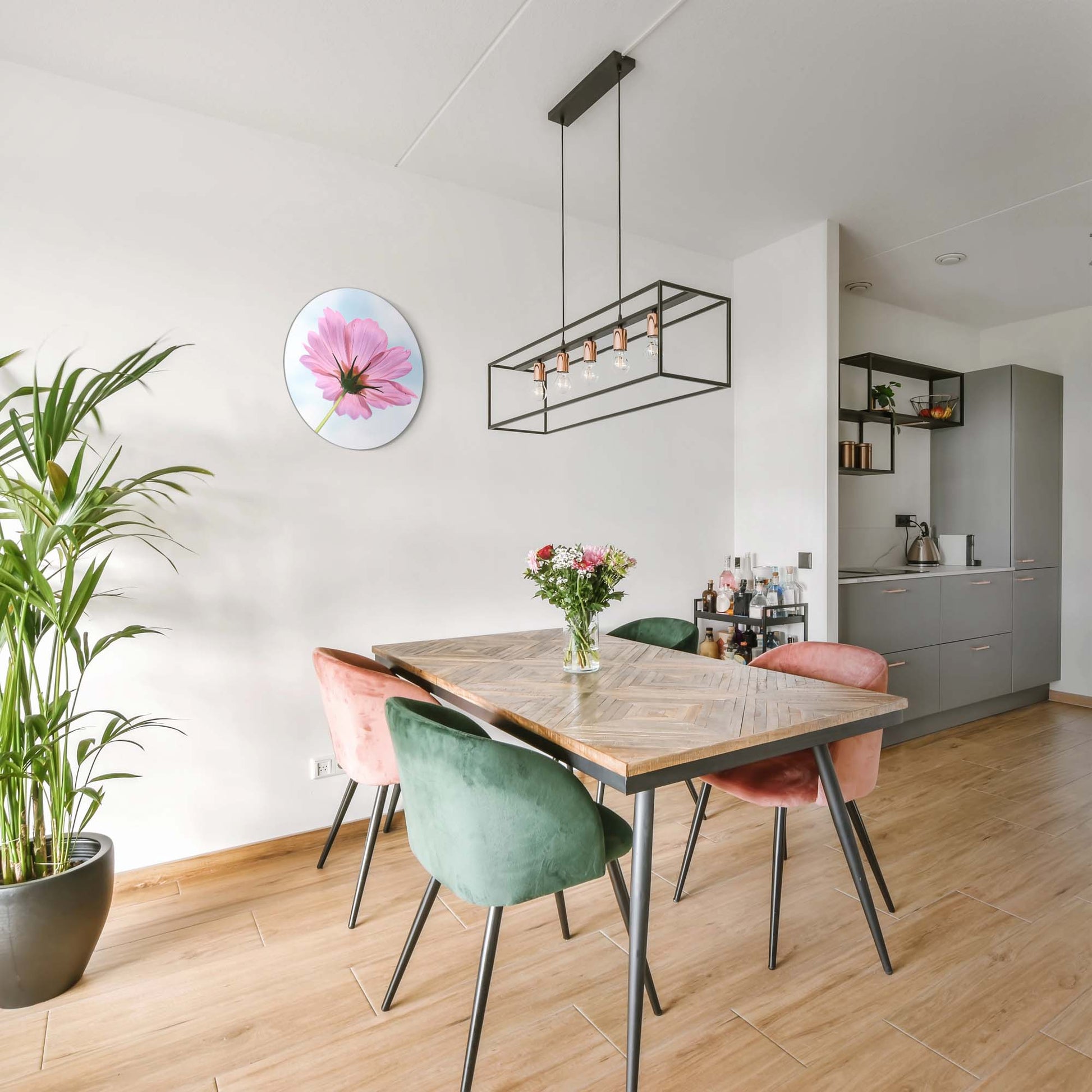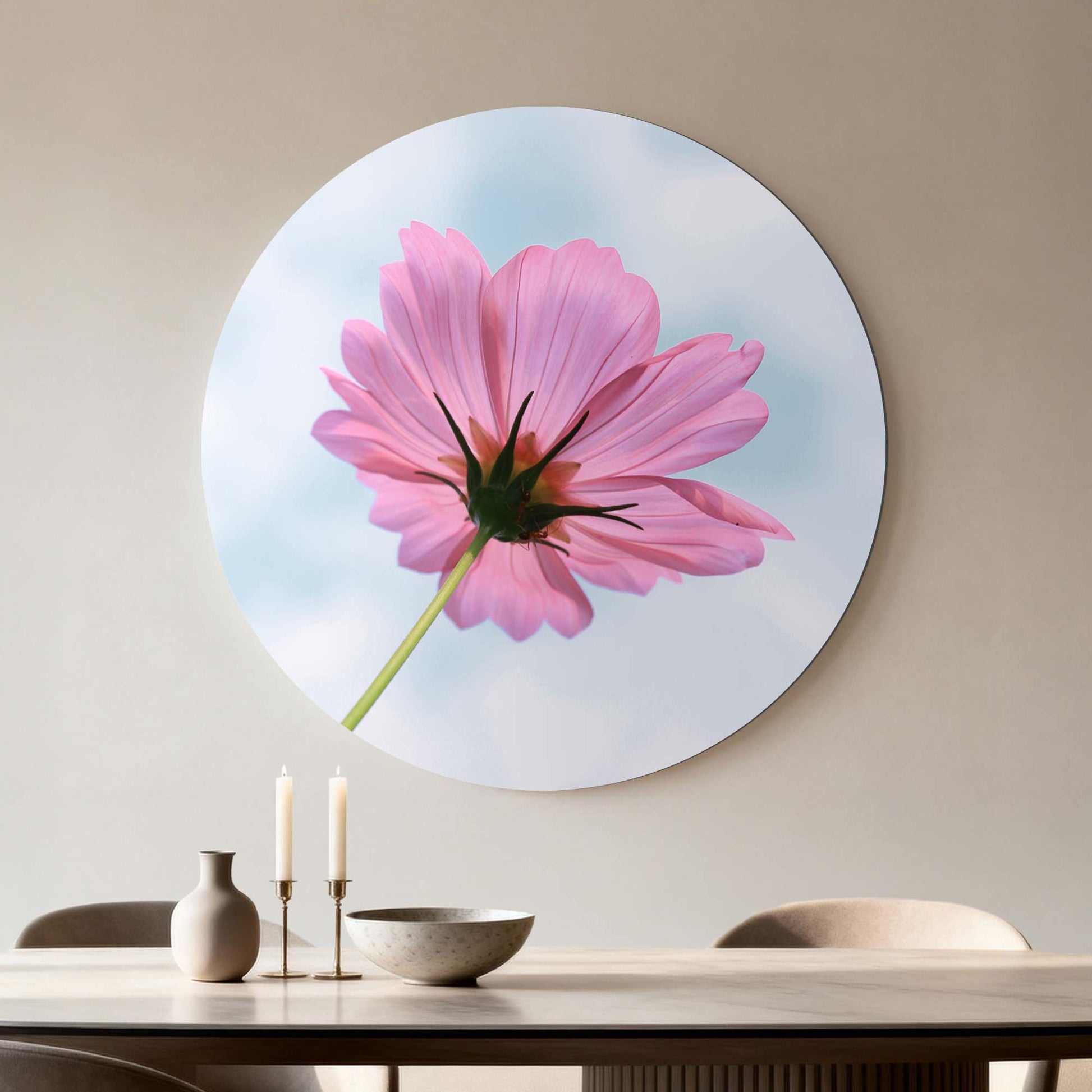 Een zachtroze bloem die zich opent naar de hemel. De Sky Blossom muurcirkel brengt licht, rust en een vleugje poëzie in je interieur.